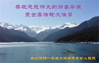 四川省绵阳市一大法弟子及家属恭祝慈悲伟大的师父生日快乐!庆祝世界法轮大法日!
