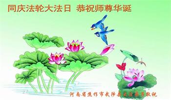 河南三门峡市一大法弟子恭祝慈悲伟大的师尊生日快乐,普天同庆法轮大法日!