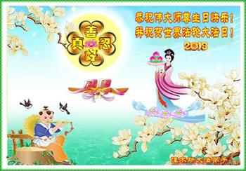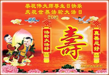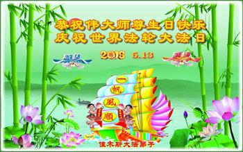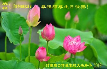 中国大陆河南省济源市全体大法弟子恭祝慈悲、伟大的师尊生日快乐!并祝贺世界法轮大法日! 我们非常想念师父!我们会更加精進,认真做好三件事,兑现誓约,随师回家! 合十叩拜! 二零一八年五月九日 河南省济源市全体大法弟子恭祝师尊生日快乐!并祝贺世界法轮大法日!