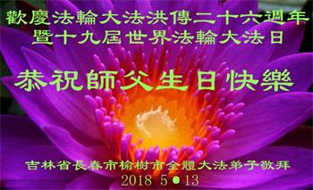 吉林省通化市大法弟子恭祝慈悲伟大的师尊生日快乐!庆祝法轮大法洪传二十六周年!