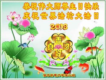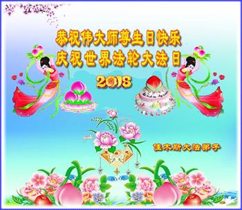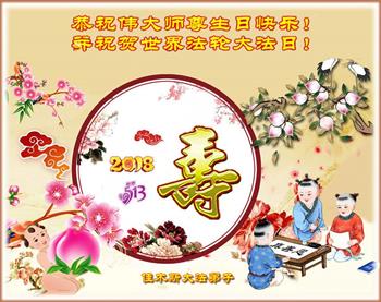 祝贺5.13世界法轮大法日! 珍惜万古不遇的法轮大法修炼机缘,做好三件事,遇事向内找,多救人,兑现誓约。 跪拜师父 辽宁省沈阳市沈河区两老年大法弟子敬上 二零一八年五月八日 辽宁省沈阳市皇姑区母女大法弟子恭祝慈悲伟大的师尊生日快乐!