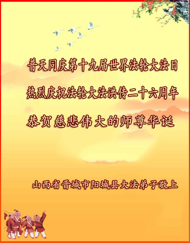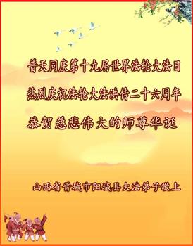 山西省晋城市泽州县大法弟子恭贺师尊华诞!庆祝世界法轮大法日!