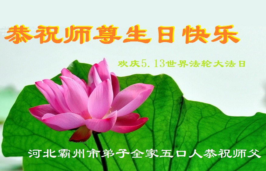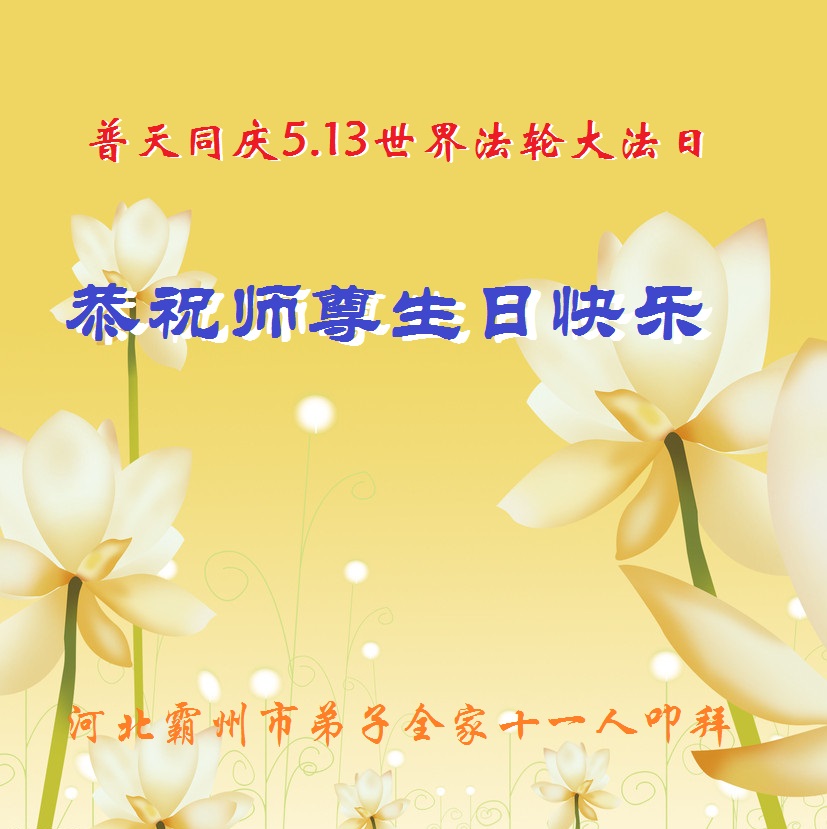 河北省廊坊地区一大法弟子恭祝:慈悲伟大的师父生日快乐!普天同庆世界法轮大法日!及大法洪传26周年!