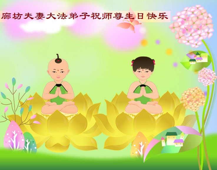 河北省廊坊夫妻大法弟子恭祝师尊生日快乐!