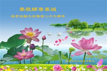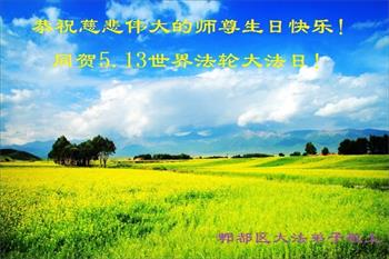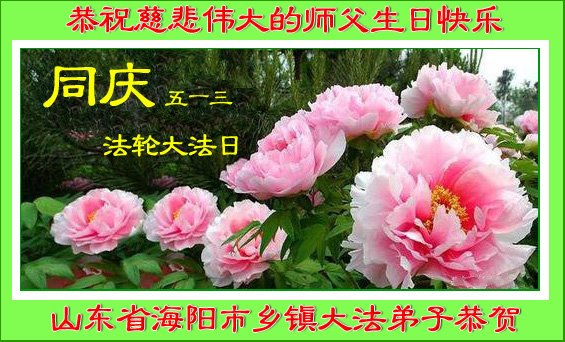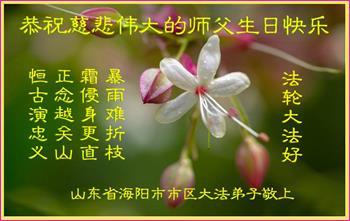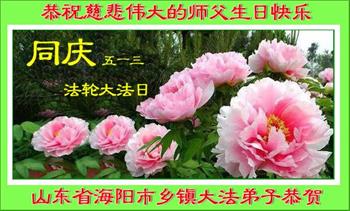 山东莱芜市大法弟子恭祝慈悲伟大的师尊生日快乐!恭祝法轮大法洪传世间二十六周年!