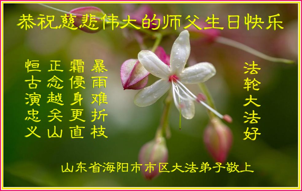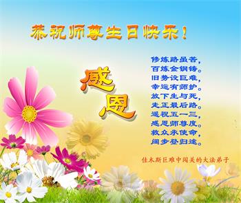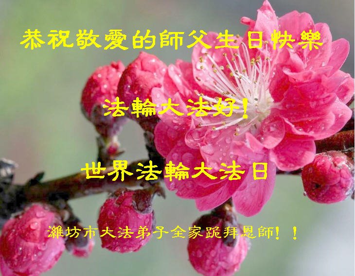 潍坊市大法弟子永進全家恭祝慈悲伟大的师父生日快乐! 黑龙江省鹤岗市三人学法小组大法弟子祝师父生日快乐!