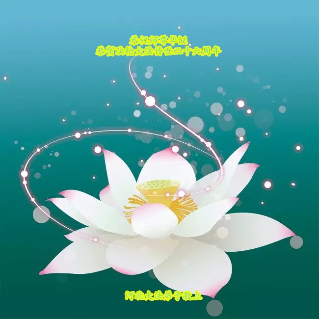 感恩师尊慈悲苦度, 普天同庆第十九届世界法轮大法日! 同祝法轮大法洪传26周年 修炼路虽苦, 百炼金钢铸。 旧势设巨难, 幸运有师护。 放下生与死, 走正最后路。 遥祝五一三, 感恩师尊度。 救众承使命, 阔步登归途。 天津市河西区大法弟子恭祝师尊生日快乐!暨法轮大法日!