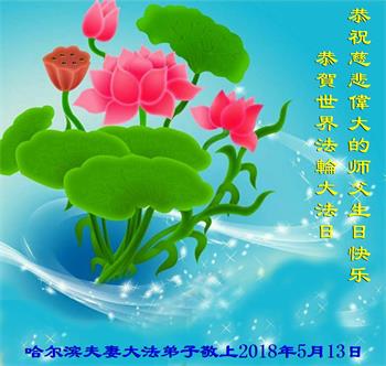 黑龙江省哈尔滨一夫妻大法弟子恭祝师父生日快乐!