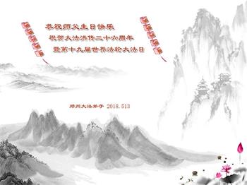 河南省郑州大法弟子恭祝师父生日快乐!暨第十九届世界法轮大法日!祝贺大法洪传二十六周年!