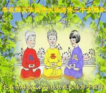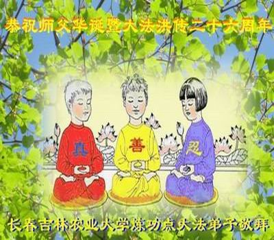 吉林农业大学炼功点大法弟子恭祝师父生日快乐!暨大法洪传二十六周年!