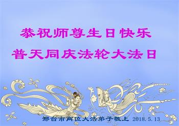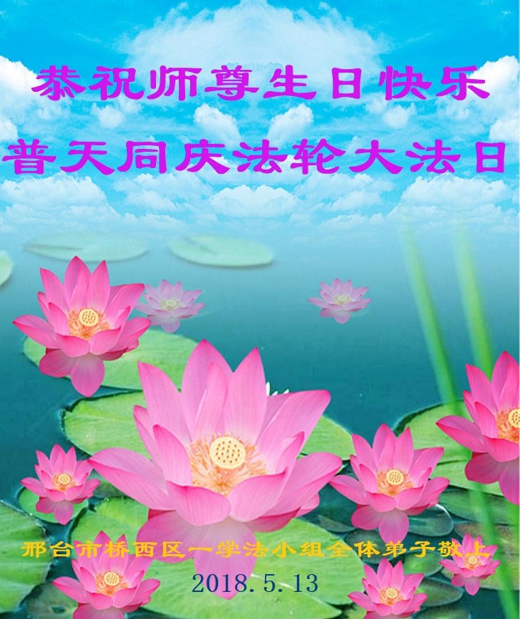 【明慧网二零一八年五月十四日】 河北省邢台市长征社区全体大法弟子恭祝师尊华诞快乐!普天同庆法轮大法日!