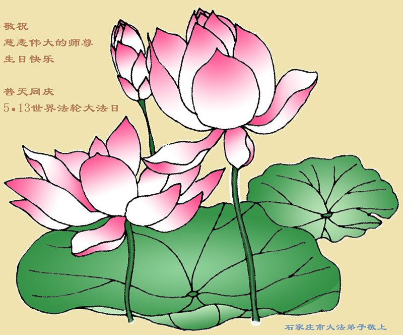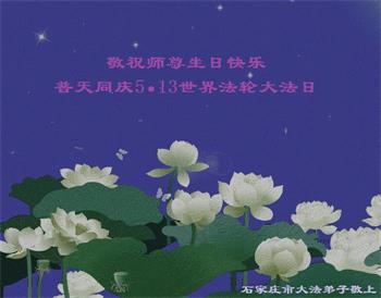 师尊辛苦了!弟子叩谢师尊!在有限的时间里,弟子谨记师尊教诲,学好法,多救人,愿所有的众生都沐浴在大法的福音中! 河北石家庄市大法弟子敬祝师尊生日快乐!恭贺法轮大法日!