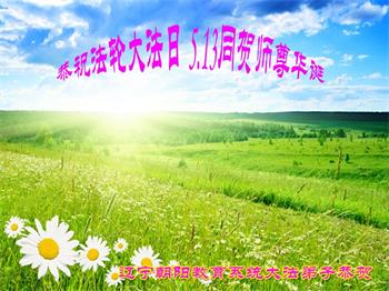 辽宁朝阳教育系统大法弟子恭贺法轮大法日暨师尊华诞!