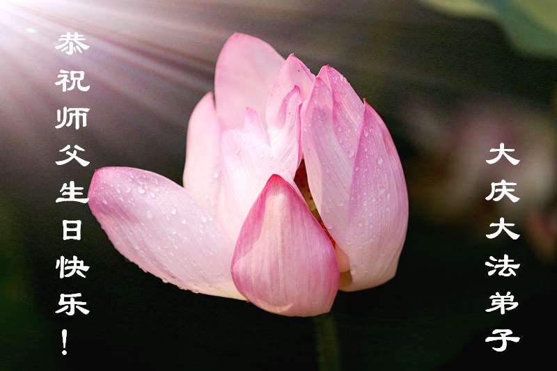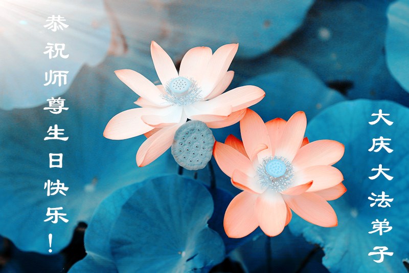 感谢师父的慈悲救度,不离不弃的慈悲于弟子,再次叩谢师父,祝师父生日快乐! 山东省青岛大法弟子恭贺世界法轮大法日!暨师尊华诞!