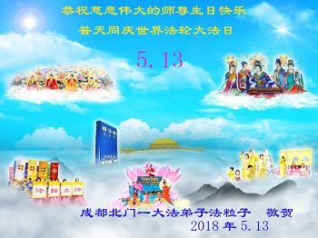 四川省成都北门一大法弟子恭祝师尊生日快乐!
