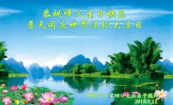 恭祝师尊生日快乐! 师尊您辛苦了!谢谢师尊的慈悲苦度,弟子愧对师尊,还有很多执着心没修下去,在心性方面离师尊要求太远,弟子坚信师尊、多学法、修好自己,走好最后的路,努力多救人,兑现史前誓约! 成都北门一大法弟子法粒子 敬贺 2018年5·13 吉林省长春一学法小组大法弟子恭祝慈悲伟大的师尊生日快乐!