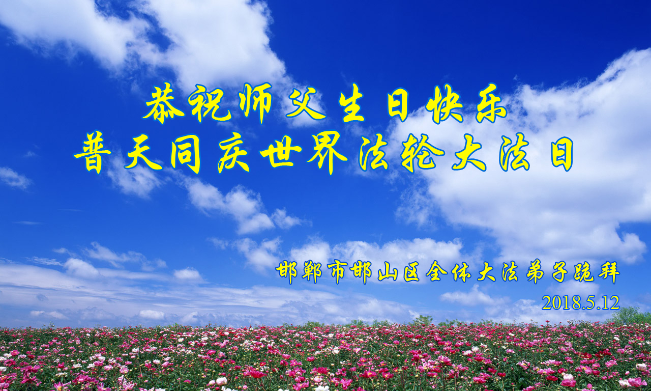 河北省邯郸市邯山区全体大法弟子恭祝师父生日快乐!普天同庆法轮大法日! 2018年黑龙江省两大法弟子祝师父生日快乐!