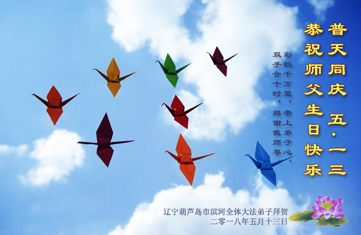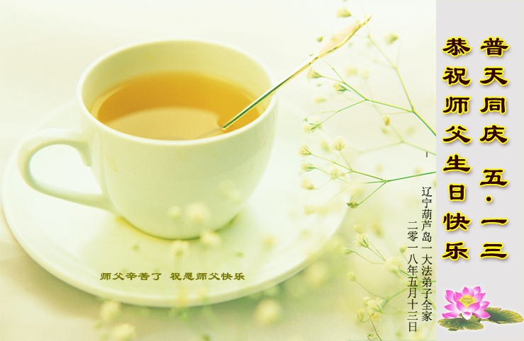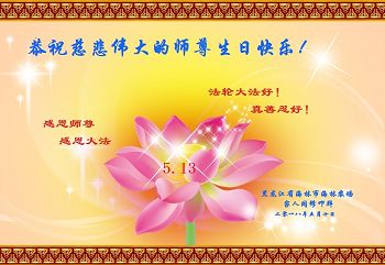 【明慧网二零一八年五月十四日】 黑龙江省牡丹江市海林市大法弟子恭祝慈悲伟大的师尊生日快乐!