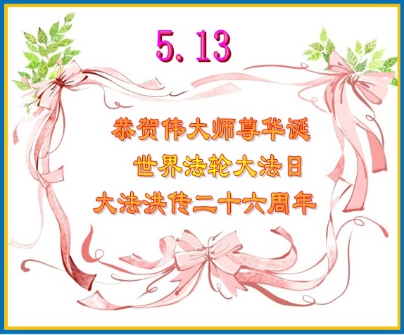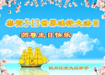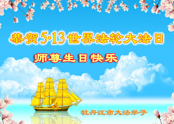 师尊辛苦了,在这个普天同庆的日子里,恭祝慈悲伟大的师尊生日快乐!恭祝第十九届世界法轮大法日!暨大法洪传世界二十六年! 黑龙江省牡丹江市大法弟子恭祝513世界法轮大法日!同祝师尊生日快乐!
