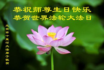 我们这里老年同修多,大家大多都不会上网,在这里我代我们当地同修们一同恭祝伟大师尊华诞暨世界法轮大法日!师尊辛苦了!祝师尊快乐!惟愿师尊笑!我们这里有的同修也没写征稿,但是讲真相三件事做的都很好。精進实修! 北京市十里河大法弟子恭祝师尊生日快乐!