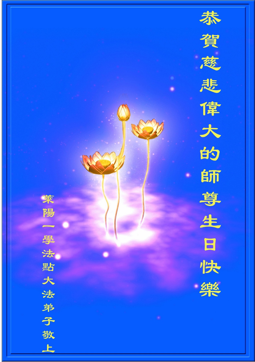 【明慧网二零一八年五月十四日】 山东省烟台市莱阳市一学法点大法弟子恭祝师尊生日快乐!