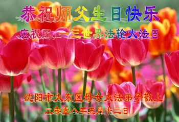 辽宁省沈阳市大东区母女大法弟子恭祝师父生日快乐!