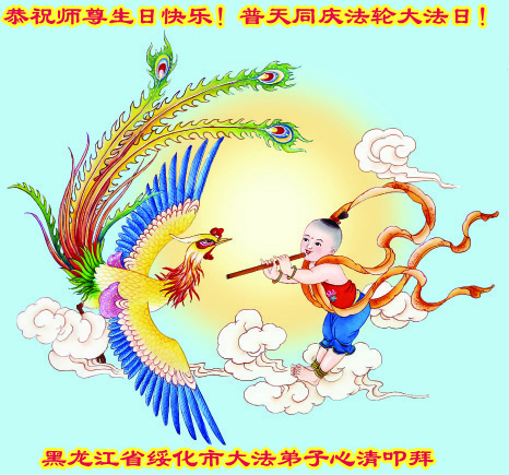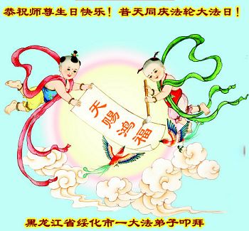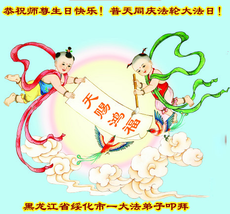 恭祝师尊生日快乐! 普天同庆法轮大法日! 黑龙江省绥化市一大法弟子恭祝师尊生日快乐!