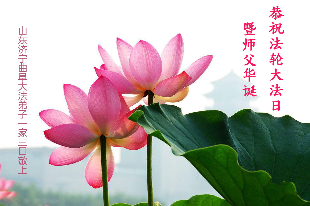 山东省济宁市曲阜市大法弟子一家三口恭贺法轮大法日!