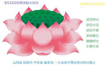 山西省阳泉市平定县一大法弟子恭祝师尊生日快乐!同祝世界法轮大法日!