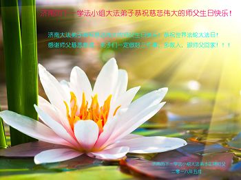 山东济南历下一学法小组大法弟子恭祝慈悲伟大的师父生日快乐!