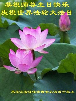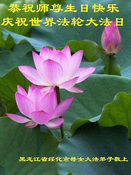 黑龙江省绥化市母女大法弟子恭祝师尊生日快乐!恭贺法轮大法日!