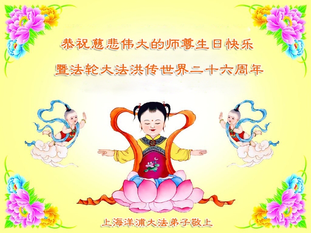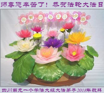 弟子一定尽心尽力做好三件事,多救人,跟师尊回家。 弟子跪拜! 二零一八年五月十二日 上海洋浦大法弟子恭祝慈悲伟大的师尊生日快乐暨法轮大法洪传二十六周年!