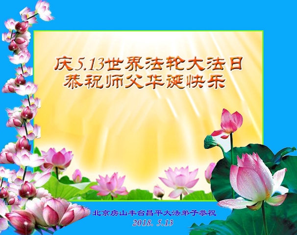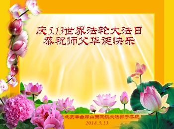 感谢您的慈悲救度之恩,在修炼的路上不断的慈悲指点,使弟子能够在正法路上修正自己救度世人。回想弟子的修炼路真得有很多的不足,愧对师尊的慈悲苦度,愧对您为弟子的巨大付出与承担,请师尊放心,在今后弟子一定好好学法,修好自己,做好大法弟子该做的三件事,救度更多的众生。让您多一份欣慰,少一份操劳。再一次恭祝慈悲伟大的师尊生日快乐! 大法弟子学法小组及家人叩拜师尊 2018年5月12日 北京房山、丰台、昌平大法弟子携家人欢庆5.13世界法轮大法日!恭祝慈悲伟大的师尊生日快乐!