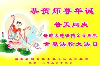 【明慧网二零一八年五月十四日】 山东青岛大法弟子恭祝师尊生日快乐!