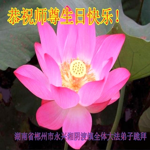 师尊您好! 感恩师尊的慈悲苦度,感恩师尊的一路保护!我们一定抓紧有限的时间,精進实修,互相配合,做好三件事。跟师尊回家。 湖南省郴州市永兴湘阴渡镇全体大法弟子恭祝师尊生日快乐!