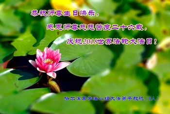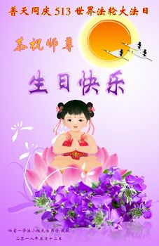 5.13 是宇宙众生庆典的日子 是伟大师尊的生日 是世界法轮大法日 是最神圣的日子 弟子在此跪拜师尊 首先祝师尊生日快乐 跪谢师尊的慈悲救度 弟子会向内找 勇猛精進 做好三件事 愿师尊少一些操劳 多一些欣慰 山东省滨州市阳信县全体大法弟子 2018/5/12 黑龙江哈尔滨市某学法小组大法弟子恭祝师尊生日快乐,感恩师尊慈悲苦度二十六载,祝贺2018世界法轮大法日!