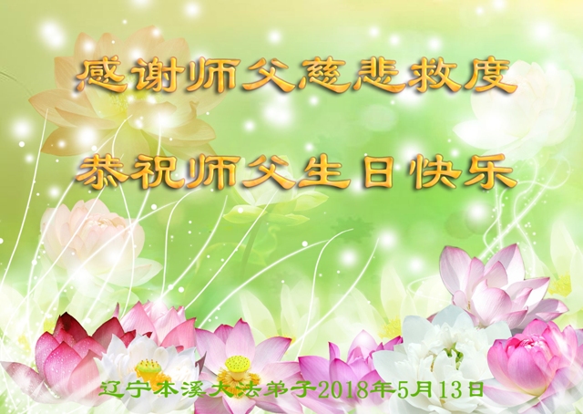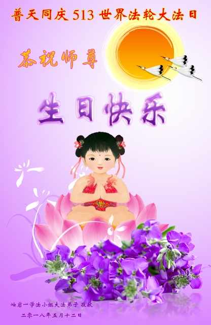 【明慧网二零一八年五月十四日】 辽宁葫芦岛新区一学法小组恭祝师尊生日快乐!