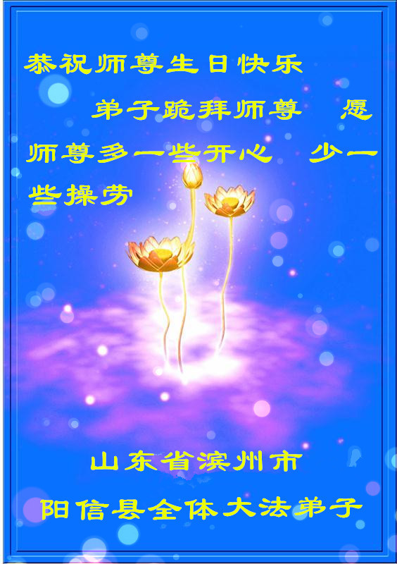 山东省滨州市阳信县全体大法弟子恭祝师尊生日!