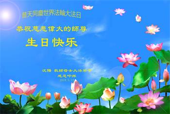 今天是师父生日,弟子祝师父生日快乐!弟子一定加倍努力,不断精進!每一天都修好自己,感谢师父慈悲苦度!恭贺世界法轮大法日! 大陆一大法弟子恭祝师父生日快乐!