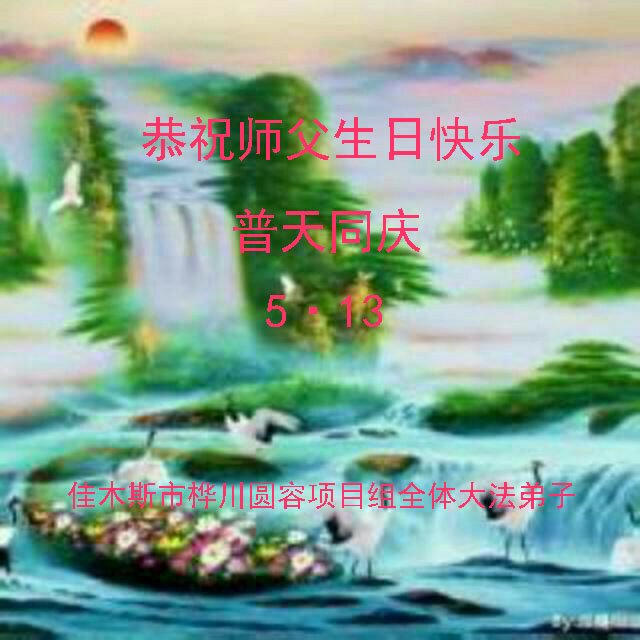佳木斯市圆容项目组全体大法弟子恭祝:慈悲伟大的师尊生日快乐!普天同庆5·13世界法轮大法日!庆祝大法洪传二十六周年! 河北唐山白鹿携全家大法弟子恭祝师尊生日快乐!