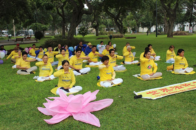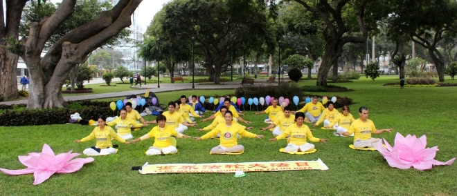 图2-3: 秘鲁法轮功学员的功法演示 |