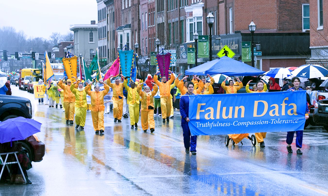 【明慧网二零一八年五月二日】(明慧记者程德佛蒙特州报道)法轮功学员于二零一八年四月二十九日参加美国佛蒙特州第五十二届枫叶节大游行。这是佛蒙特州连续三日枫糖推广活动的压轴戏,州长、政要踊跃参与。法轮功学员第一次参与该游行,受到欢迎。 图:法轮功学员参与法轮功学员佛蒙特州枫叶节大游行 |