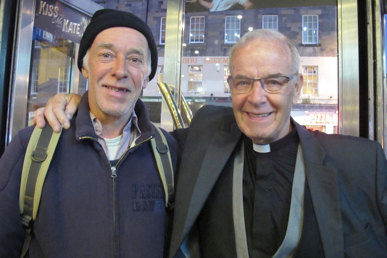伊姆雷·巴拉斯(Imre Balazs)是位专业舞蹈人士,曾参加专业舞蹈竞技,教授拉丁舞,也是一家匈牙利舞蹈学校的创办人。他表示神韵呈现的艺术精粹与文化底蕴,令他震撼和无比喜悦。“真是太神奇了,我实在找不出任何文字来形容这么高超精准的技巧!” 伊姆雷·巴拉斯非常感佩神韵艺术家把专业舞蹈水平带到极致。他说:“女舞蹈演员们太棒了,展现出神奇美妙、非常宁静、精准至极。”看完演出,他说,“我看不够!”他还想看更多。 说到舞蹈技艺,他说:“这是流动中的平衡,是和谐一致的平衡流动,是时间上的完全同步,是水平上的完整统一,他们实在是太专业了!” 伊姆雷·巴拉斯感佩神韵艺术家的舞蹈和音乐出神入化,带给他穿越时空的体验,并激发他对五千年中华神传文化的向往。他说:“仿佛间,你会感到是中国的神话故事以现代方式呈现在你的眼前,这样的演绎历史很精彩。”“中国的历史和现实仿佛近在眼前,让你向往那遥远历史和古老的国度。让我想更多的去了解中国的历史,而神韵已经带我走了第一步。” 苏格兰神父:创世主带来新的希望 重建信念  图8:五月二十一日,神父詹姆斯·利德尔(James Liddle)先生(右)观看了神韵纽约艺术团今年在爱丁堡的最后一场演出。 |