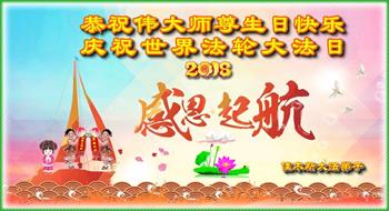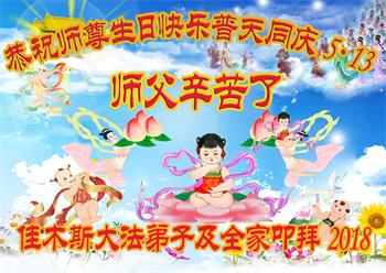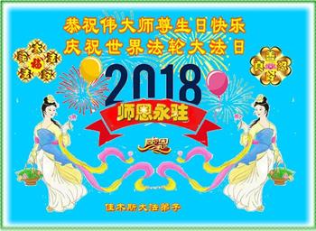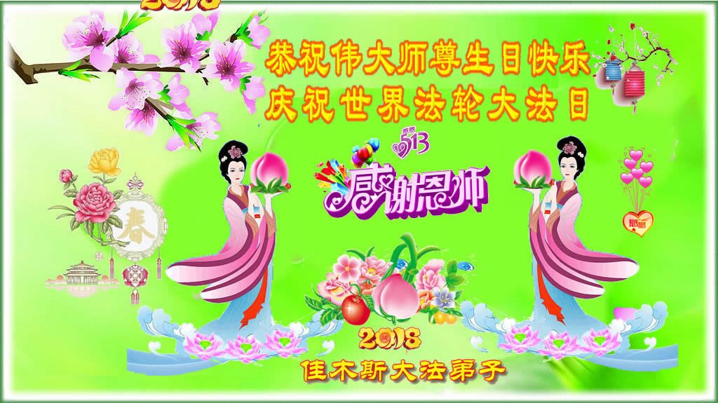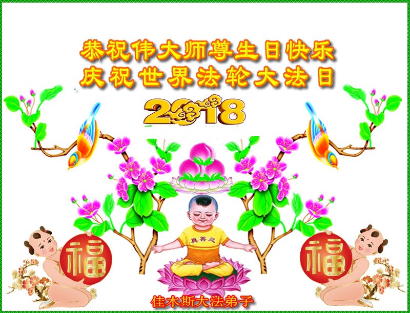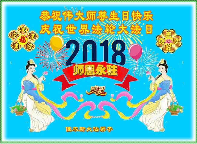 【明慧网二零一八年五月八日】 黑龙江省佳木斯大法弟子庆祝伟大师尊生日快乐!并祝贺世界法轮大法日!