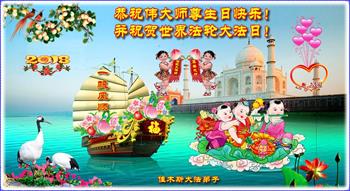 得法法中乐,真修修成佛。 无私天地宽,为公心胸阔。 三事要做好,法救众生乐。 救度有缘人,除恶救众生。 佳木斯大法弟子 黑龙江省佳木斯大法弟子庆祝伟大师尊生日快乐!并祝贺世界法轮大法日!