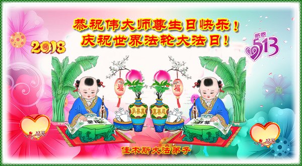 恭祝师尊生日快乐!恭祝五一三法轮大法节! 黑龙江佳木斯市母女两名大法弟子敬上 二零一八年四月三十日 恭祝慈悲伟大的师尊生日快乐!恭贺世界法轮大法日!