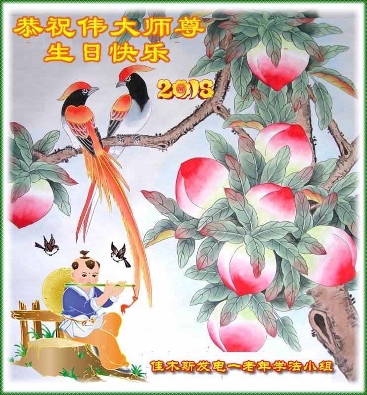 法轮大法好,法光空中照。 正法近尾声,快步追随跑。 救人兑誓约,三事必做到。 随师登法船,回家心愿了。 跪拜谢师尊,师尊生日好! 黑龙江省佳木斯发电一老年学法小组大法弟子庆祝伟大师尊生日快乐!并祝贺世界法轮大法日!
