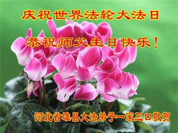 河北省保定市雄县大法弟子一家三口恭祝师父生日快乐!庆祝世界法轮大法日!