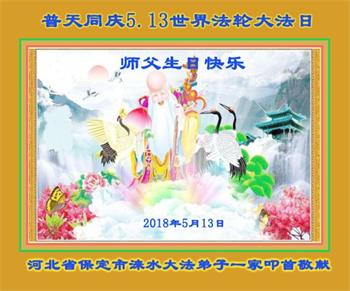 河北省保定市涿州松林店镇一学法小组大法弟子叩拜敬上 二零一八年五月 河北保定市大法弟子恭贺法轮大法日!