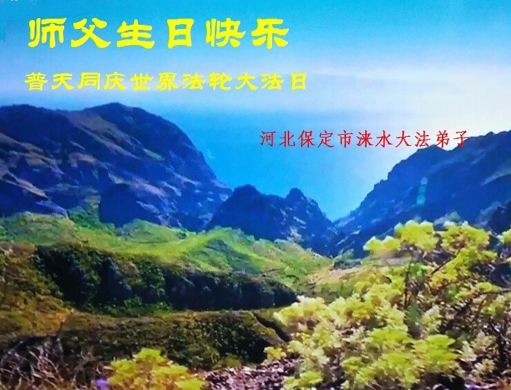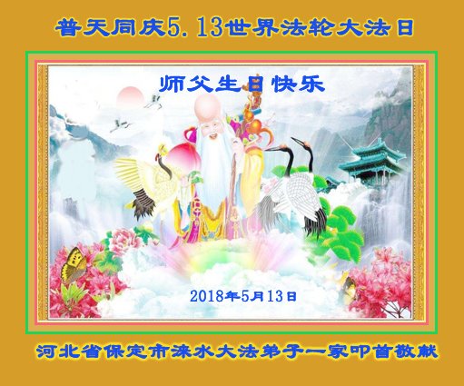 普天同庆世界法轮大法日! 恭祝师父生日快乐! 河北保定市涞水大法弟子恭祝师父生日快乐!普天同庆世界法轮大法日!